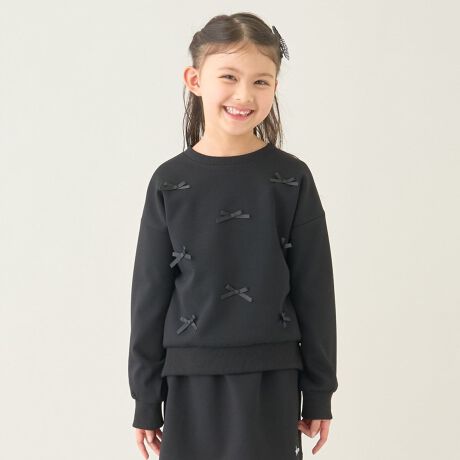 全体にちりばめられたリボンモチーフがかわいいパフスウェットプルオーバー。