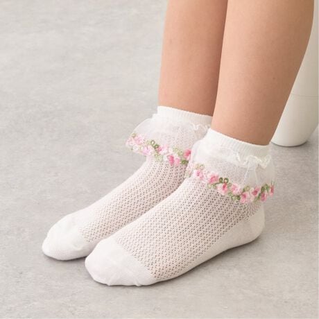 お花モチーフがチュールでふんわり飾られ、特別な日のコーデにもぴったりのアイテムです。