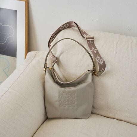 程よいハリ感のあるコーデュラナイロンに、さりげなく施したモノグラム刺繍が上品なアクセントを添えています。