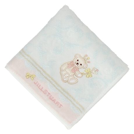 ベアのアップリケ刺繍がキュートなタオルハンカチ。プレゼントにもおすすめな一枚です。