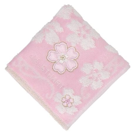 人気のサクラ柄のアップリケ刺繍が施されたタオルハンカチです。