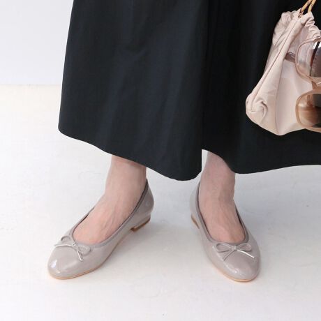 程良い丸みのラウンドトゥが大人可愛い雰囲気のラウンドトゥエナメルバレエシューズが登場しました。飽きのこないデザインで、使い勝手の良い定番アイテム。ラウンドトゥやリボンモチーフが女性らしさを演出し、さまざまな服装やシーンで幅広く使えるのがポイント。シーズンレスで使えるフェイクエナメル素材は多少の雨でも履ける優秀アイテム。