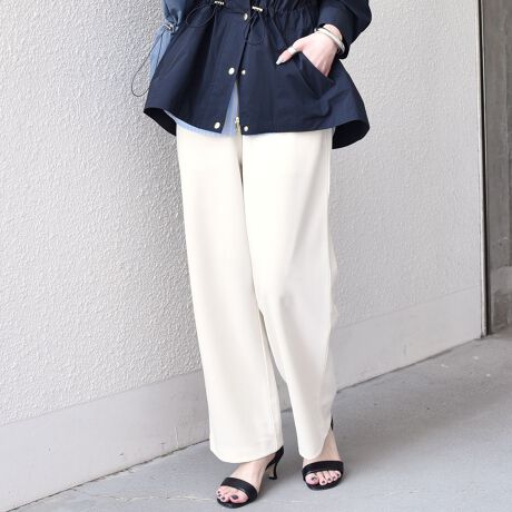 落ち感のあるカットジョーゼット素材を使用したイージーパンツ。