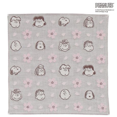 桜の季節にぴったりな春らしい優しいカラーと、サクラの花とスヌーピーや仲間たちが描かれた3重ガーゼハンカチ。プレゼントにもおすすめです。
