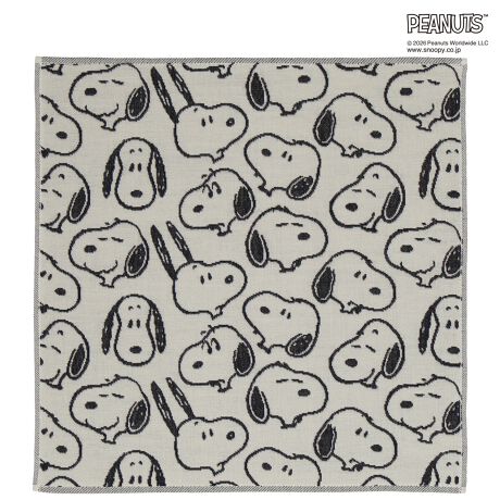 ピーナッツの仲間たちが大人かわいい、人気のモノクロデザインの3重ガーゼハンカチです。