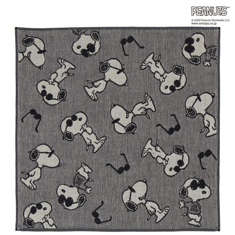 ピーナッツの仲間たちが大人かわいい、人気のモノクロデザインの3重ガーゼハンカチです。