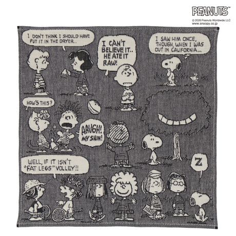 ピーナッツの仲間たちが大人かわいい、人気のモノクロデザインの3重ガーゼハンカチです。