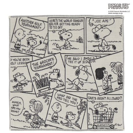ピーナッツの仲間たちが大人かわいい、人気のモノクロデザインの3重ガーゼハンカチです。
