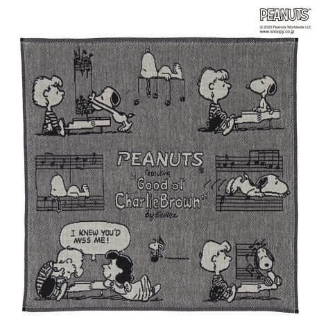 ピーナッツの仲間たちが大人かわいい、人気のモノクロデザインの3重ガーゼハンカチです。