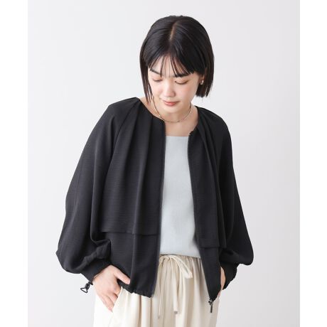 優しい肌ざわりで、さらっと羽織れるジップブルゾン。裾にはドローコードが付いており、絞ることでシルエットのアレンジも可能。