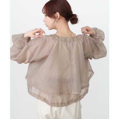 1枚羽織るだけでこなれ感を演出するシアーブルゾンの登場です。透明感のある綺麗なペールトーンの3色展開でシーズンムードが高まります。裾にぐるっと入った丸ゴムは好きな位置で結んで絞り具合を変えて頂ける仕様。袖口を捲り上げて手首を見せれば一気に抜け感のあるスタイルになります。ふらしのバックディティールで360度どこから見ても抜かりないデザインも好印象です。さり気ないパイピングもアクセントになり、ふわっとエアリー感のある生地が初夏までしっかりと活躍してくれるアイテムです。