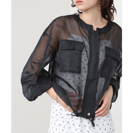 1枚羽織るだけでこなれ感を演出するシアーブルゾンの登場です。透明感のある綺麗なペールトーンの3色展開でシーズンムードが高まります。裾にぐるっと入った丸ゴムは好きな位置で結んで絞り具合を変えて頂ける仕様。袖口を捲り上げて手首を見せれば一気に抜け感のあるスタイルになります。ふらしのバックディティールで360度どこから見ても抜かりないデザインも好印象です。さり気ないパイピングもアクセントになり、ふわっとエアリー感のある生地が初夏までしっかりと活躍してくれるアイテムです。