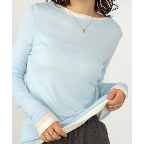 ほんのり透けるセミシアー素材が、シンプルながらも抜け感を演出してくれるベーシックカットソー。すっきりとしたシルエットで、1枚でもインナー使いでも活躍する万能アイテムです。やわらかなニュアンスカラー展開で、春先からロングシーズン着回し可能。色違いで揃えたくなる、毎日にちょうどいい一枚です。