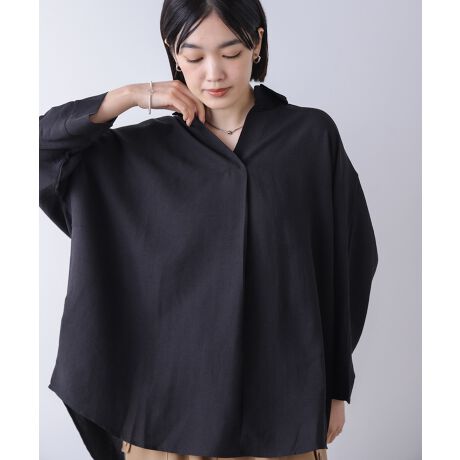さらっと着るだけで、こなれた大人の雰囲気。毎シーズンご好評をいただいている、人気シリーズのシャツチュニックです。首元をすっきり見せるスキッパー衿が、ほどよくクールな印象をプラス。ゆったりとしたシルエットで体のラインを拾いにくく、気になる部分も自然にカバーします。前後差のある着丈が動きのあるシルエットをつくり、さっと着るだけで抜け感のあるスタイルに。涼しげな表情と軽やかな着心地で、デイリーコーデに自然となじみます。色違いで揃えたくなる豊富な6色展開。きれいめにもカジュアルにも合わせやすく、着回し力の高いデザインです。