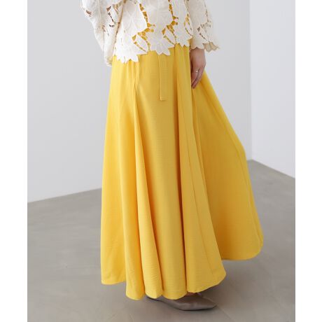 腰まわりをすっきり見せるポイントベルトがアクセントになり、トップスをインするだけでコーディネートが完成。裾に向かって広がるフレアーシルエットが、動くたびに女性らしい表情を生み出します。生地分量にゆとりがあり、脚のラインを拾いにくく、体型カバーにもおすすめ。