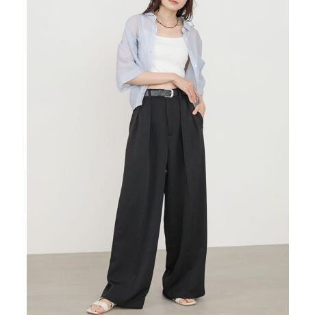 すとんと落ちる美しいシルエットが魅力のツータックワイドパンツ。フロントのタックが立体感を生み、脚のラインを拾わずリラクシーながらも上品な印象に仕上げてくれます。シンプルながらもこなれ感のあるデザインで、オンオフ問わず着回しやすい1本です。後ろウエストはゴム仕様で、ストレスフリーにご着用いただけます。