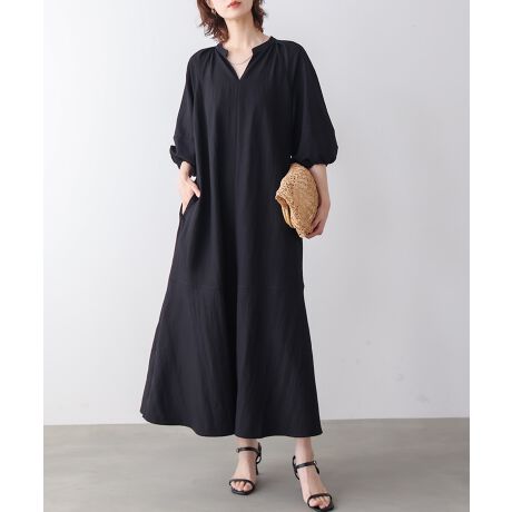 1枚でコーディネートが完成する、女性らしいデザインが魅力。ふんわりとした袖のボリュームが、腕を細くすっきり見せてくれます。裾に向かって広がるティアード切り替えが動きを生み、歩くたびにやさしく揺れる華やかな印象に。甘さが出すぎないシルエットで、大人の女性にも取り入れやすい一着です。