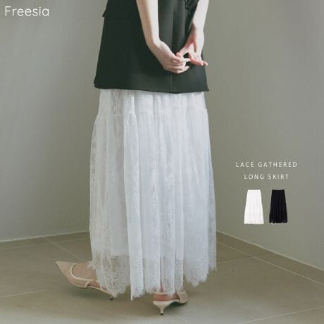 レース 切替 ギャザー ロング スカート Freesia フリージア
