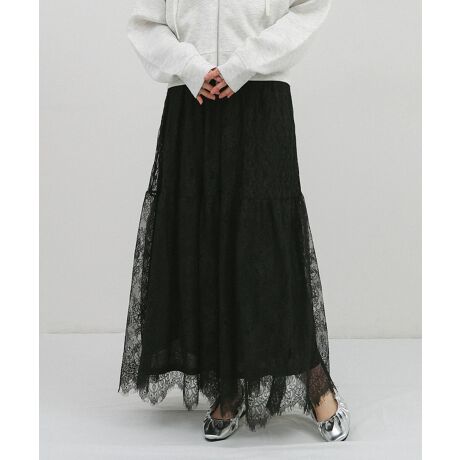 レース 切替 ギャザー ロング スカート Freesia フリージア