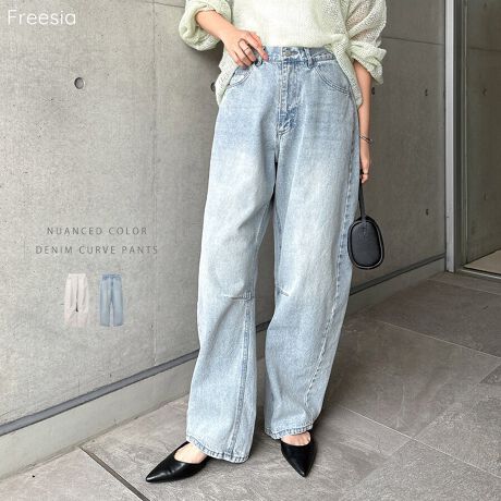 ニュアンス カラー デニム カーブ パンツ Freesia フリージア
