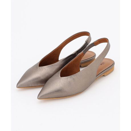 ■デザインシルエットが綺麗なポインテッドトゥサンダルです。幅広のストラップを採用し、着脱しやすく、歩行時にもずれにくいゴム付き仕様で、安定感のある履き心地に仕上げています。ヒールの高さは10mmと低めで、足に負担がかかりにくく、歩きやすいデザインです。アッパー素材には、ネイビー・ブラウンにはカウレザー、ブロンズ・シャンパンゴールドにはゴートレザーを使用し、カラーごとに異なる素材感を楽しめます。足に当たるライニングには肌触りの良い人工スエードを使用しています。中底の芯には、足当たりの良いスポンジ芯に加え、足に馴染みやすくフィット感を高める厚みのある低反発素材の2種類の芯材を採用。本底には軽く柔らかな発泡性の高い素材を使用し、滑り止め加工を施すことで、安定した歩行をサポートします。
