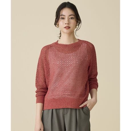 ボトムを選ばず着こなせる軽やかなメッシュニット■デザイン繊細なメッシュ編みでほどよくトレンド感を取り入れたニットです。身体のラインを拾いにくい、程よくゆとりのあるベーシックなシルエットに仕上げています。さまざまな装いに馴染み、ワードローブに取り入れやすいアイテムです。■素材原料にはフレンチリネンを使用しています。リネン特有の清涼感のある質感と、やさしい風合いが特徴の糸です。表面の毛羽感をできるだけ抑え、すっきりと見えるよう工夫した紡績方法で仕上げています。■同素材プルオーバーニット(KRW7LM0355)