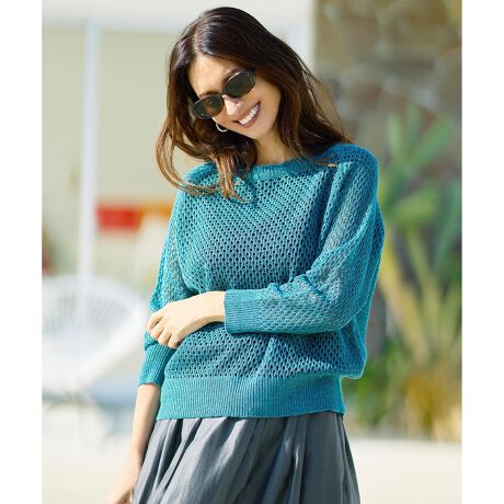 ボトムを選ばず着こなせる軽やかなメッシュニット■デザイン繊細なメッシュ編みでほどよくトレンド感を取り入れたニットです。身体のラインを拾いにくい、程よくゆとりのあるベーシックなシルエットに仕上げています。さまざまな装いに馴染み、ワードローブに取り入れやすいアイテムです。■素材原料にはフレンチリネンを使用しています。リネン特有の清涼感のある質感と、やさしい風合いが特徴の糸です。表面の毛羽感をできるだけ抑え、すっきりと見えるよう工夫した紡績方法で仕上げています。■同素材プルオーバーニット(KRWRLM0355)