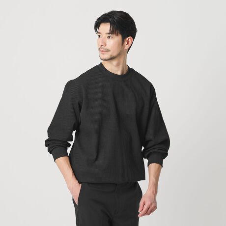 ワッフル組織がニットのような一枚着映えと吸水速乾性があるのが特徴。