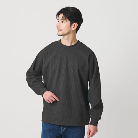 ワッフル組織がニットのような一枚着映えと吸水速乾性があるのが特徴。