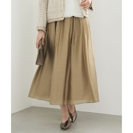 シーンを選ばず着回せる大人のギャザーフレアスカート■デザイン二重にボックスタックを施した、ギャザーフレアスカートです。素材の上品な光沢感と、軽やかに広がる程よいボリュームが、女性らしい華やかさを演出します。ウエストは総ゴム仕様で、リラックス感がありながらもきちんと見えする、コンフォートな穿き心地も魅力です。同素材のブラウス(BLW7LM0318)と合わせることで、統一感のあるセットアップ風の着こなしもお楽しみいただけます。■素材上品な光沢感と程よいシアー感のある素材を使用しています。セルロース特有のソフトな風合いと落ち感があり、シルエットを美しく演出します。ふんわりと軽やかで、カラーの発色の良さも魅力です。プリント生地には、非常に軽く天然タッチの風合いが特徴のポリエステル素材を使用しています。ご家庭でのお洗濯が可能です。■同素材プレーンブラウス(BLW7LM0318)花柄プリントブラウス(BLW7LM0319)花柄プリントスカート(SKW7LM0319)