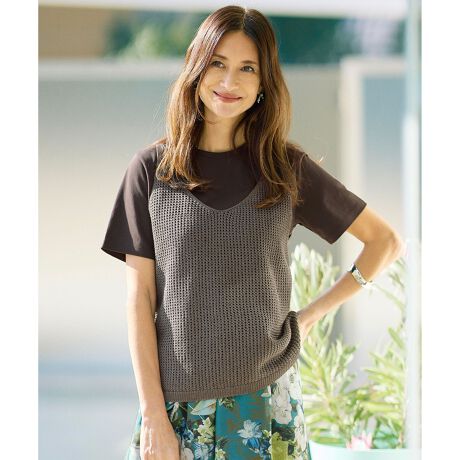重ねるだけでこなれる旬顔メッシュベスト■デザイン今シーズンのシアートレンドを大人向けにアップデートした、メッシュ編みのベストです。軽やかな透け感がありながらも主張しすぎず、いつものスタイリングに取り入れるだけで程よく旬な印象をプラスしてくれます。同素材で展開しているカーディガン(KRWRLM0352)とのレイヤードはもちろん、Tシャツやブラウスに重ねるスタイリングもおすすめです。インナーにはスーピマスムースタンクトップ(KKWRGM0336)を合わせていただくと、よりバランスよく着こなしていただけます。■素材マニラ麻を主原料とした和紙を細く薄くカットし、細番手の綿糸を包むように撚り合わせた糸に、さらにポリエステルをタスキ状に撚糸した特殊な糸を使用しています。和紙ならではの清涼感と軽やかさがあり、快適な着心地が特徴の素材です。■同素材プルオーバー(KRWRLM0351)カーディガン(KRWRLM0352)