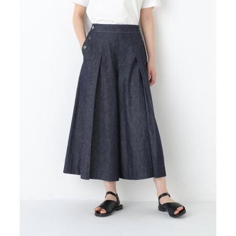 ボタンとタックステッチがポイントになるので、トップスはシンプルデザインのものが好相性です。同素材のブラウスとのセットアップもおすすめです。