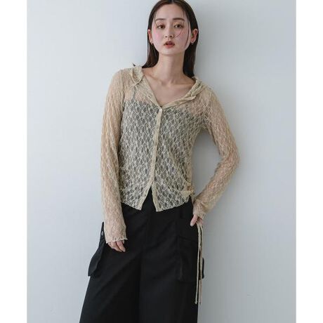 春の訪れを感じさせる、繊細なレース素材のカーディガンです。ほどよく肌が透ける表情豊かなレース地が、日常のコーディネートに軽やかな奥行きをプラスします。最大のポイントは、その日の気分に合わせて印象を変えられる襟元。フードはボタンで簡単に取り外せるため、パーカー感覚でカジュアルに着こなすのはもちろん、フードを外して上品なノーカラーカーディガンとしても重宝します。さらに、サイドの紐をきゅっと絞ることでウエストラインにメリハリが生まれ、視線を高く誘導してスタイルアップを叶えてくれる、機能性と美しさを兼ね備えた一着です。