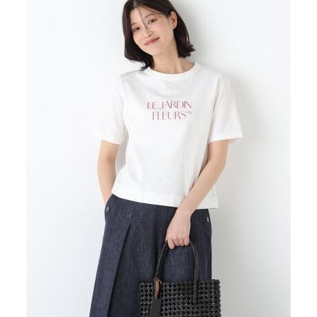 短め丈のシンプルなロゴTシャツをTSUNAGUシリーズの素材で作りました。「le jardin en fleurs」花咲く庭「sur un nuage/brise l□g□re」幸せな時間/そよ風、と「Bonjour」をボーダー柄に入れた3デザインです。
