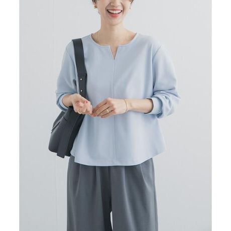 すっきりとしたスリットネックのデザインが顔まわりをシャープに演出し、上品で洗練された印象に。
