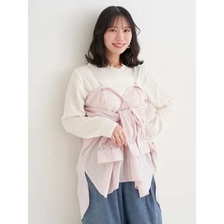 ・内側に取り外し可能なストラップがついており、袖を結んでビスチェのように着られるアレンジが楽しめる2WAY仕様。