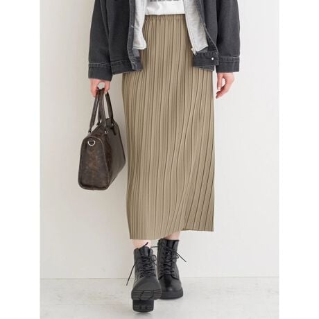 プリーツデザインで大人っぽさをプラスするナロースカート。