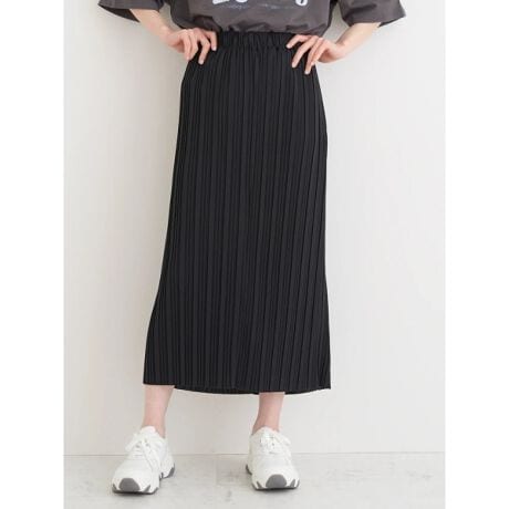 プリーツデザインで大人っぽさをプラスするナロースカート。