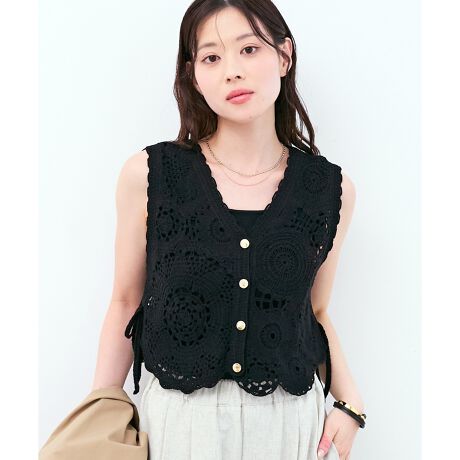 軽やかな編地で重ね着してもごわつかず、サイドのリボンディテールがさりげないアクセントに。
