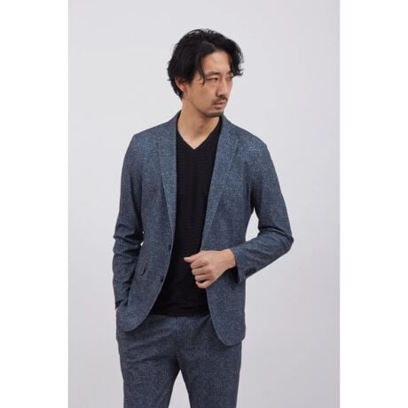 ホップサック調のプリントを施した、4WAYストレッチトリコット素材を使用した一重仕様のテーラードジャケット。通気性に優れたメッシュ構造により、サラッとした肌ざわりと快適な着心地を実現しました。程よくきちんと感のあるデザインで、デイリー使いはもちろん、テレワークなどのシーンでもラフになり過ぎない印象で着用いただけます。同素材のパンツと合わせた、軽快でスマートなセットアップスタイルもおすすめです。