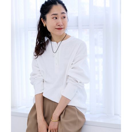特徴的な凹凸のある素材感がポイントのサーマルカットソー。