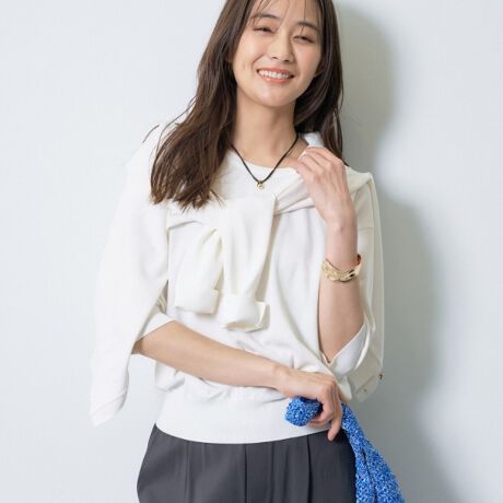 テーパードパンツやタイトスカートと合わせれば、オフィスにも対応できるきれいめスタイルに。