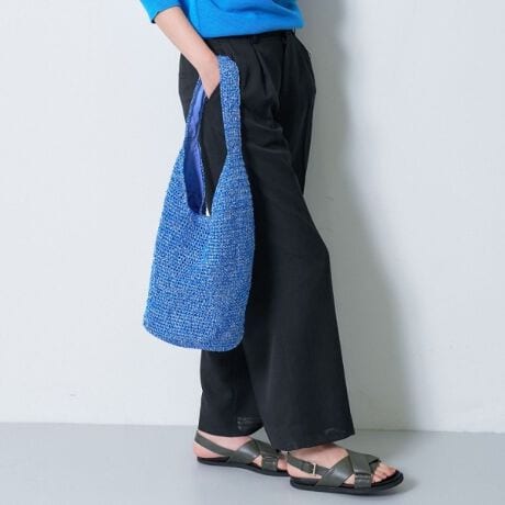 カゴバッグのようなナチュラルな表情を持ちながら、糸の華やかな光沢がモードな印象を与えます。