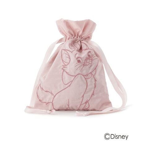 ディズニーの物語に登場するネコたちが刺繍でデザインされた巾着ポーチ。