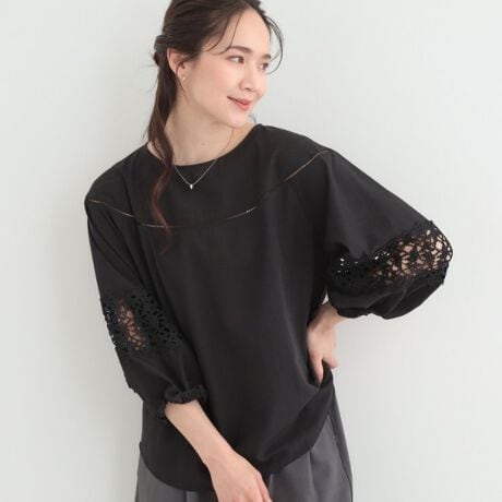 シンプルな中に程よい甘さをプラスしたデザインブラウス。