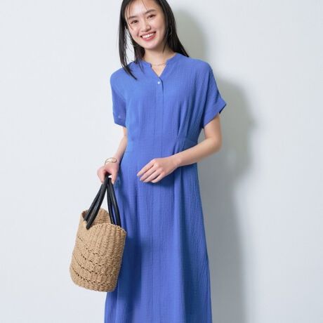 抜け感のあるバンドカラーと半袖デザインで、一枚でサマになる華やかさです。