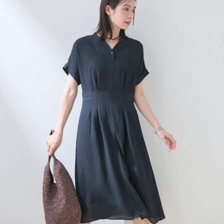 抜け感のあるバンドカラーと半袖デザインで、一枚でサマになる華やかさです。