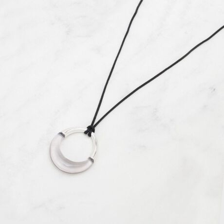 存在感のあるマーブル樹脂のトップパーツが目を惹くロングネックレスです。