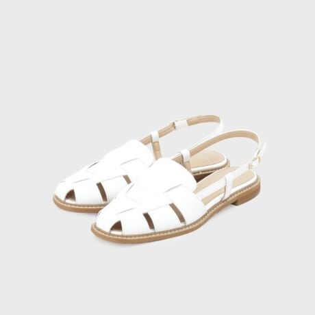 落ち着いた白とこげ茶の2色展開で、春夏の幅広いコーディネートに合わせやすい上品なデザインです。