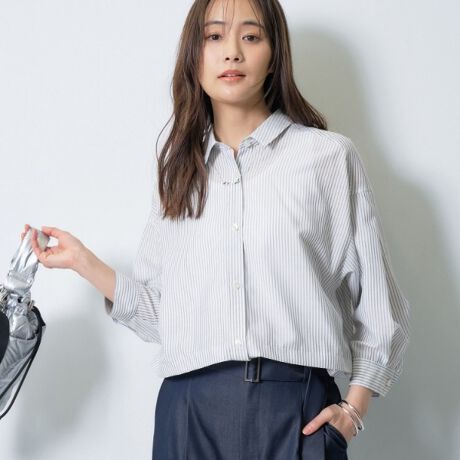 ゆったりとしたオーバーサイズながら、短めの着丈でトレンド感のあるバランスに仕上げたシアーシャツ。